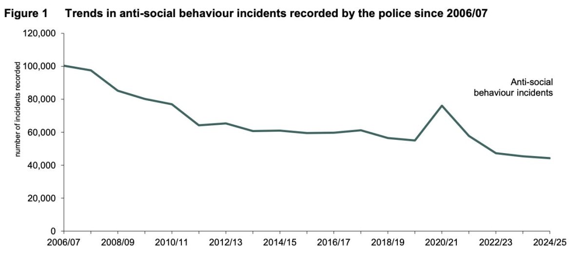 Voici quelques données similaires provenant d’Irlande du Nord sur les « incidents de comportement antisocial », car ils ont justement suivi ces derniers :