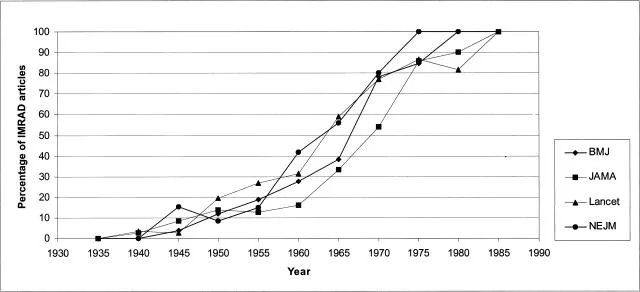 (le même qui a réalisé l’analyse des sectes), les articles scientifiques avaient autrefois du style. Aujourd’hui, ils se ressemblent tous et sont tous ennuyeux. Par exemple, pratiquement tous les articles publiés dans les revues médicales utilisent désormais le même format (introduction, méthodes, résultats et discussion) :