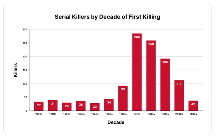 Les meurtres en série sont également en baisse :